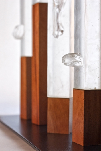 Kiln-cast glass, mahogany, brass, steel, 2018